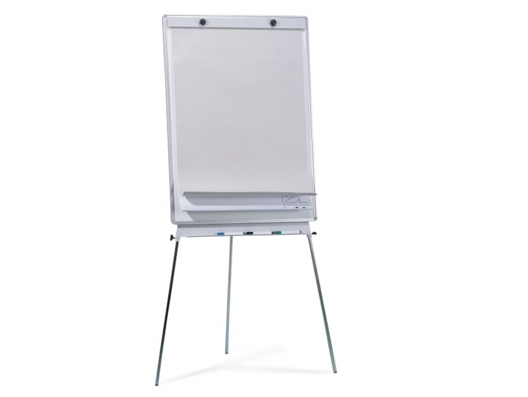 Flipchart Standard popisovatelný je biela magnetická tabuľa 100 x 70 cm s lakovaným povrchom, rámovanou v hliníkovom ráme so zaoblenými plastovými rohovými spojkami, na stojane s tromi zasúvateľnými nohami, s lištou pre uchytenie papierového bloku. Písať možno priamo na stieratelnú plochu tabule i na papierový blok.