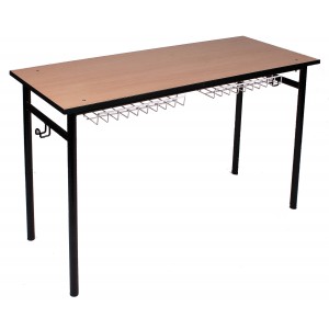 Odolná konštrukcia vyrobená z kruhovej rúrky 32mm, lakovaná práškovými vypaľovanými farbami, nohy sú ukončené plastovými koncovkami. Pracovná doska 130 x 50cm z drevotriesky hr.18 mm, dezén buk, hrany ABS 2mm.