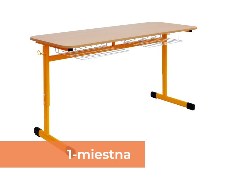 Vysoko odolná konštrukcia vyrobená z oválneho profilu 50 x 30mm, lakovaná práškovými vypaľovanými farbami. Nohy sú vybavené plastovými koncovkami s veľkou dosadacou plochou, ktoré tlmia hluk a vo veľkej miere chránia podlahu pred poškodením. Jednoduchá výšková nastaviteľnosť pomocou imbusového kľúča umožňuje výškové nastavenie na veľkosti 3, 4, 5, 6. Pracovná doska 70 x 50cm z drevotriesky hr.18 mm, dezén buk, hrany ABS 2mm. Iný dezén pracovnej plochy stolov, príp. farba hrany ABS vo farbe kovovej konštrukcie sú možné po dohode. Stôl je vybavený odkladacím drôteným košíkom a vešiačikom na zavesenie tašky.
