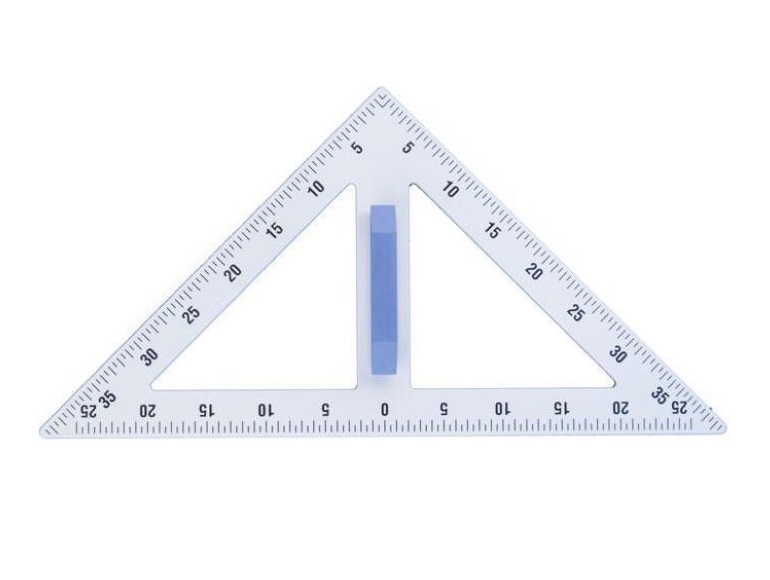 Tabuľový trojuholník PY 45° rovnoramenný je vyrobený z bieleho zdravotne nezávadného plastu, s trvanlivou potlačou odolnou voči poškriabaniu. Silikonové pätky chránia tabuľu pred poškodením a zabraňujú šmýkaniu pravítka po tabuli. Dĺžka prepony cca 60 cm.